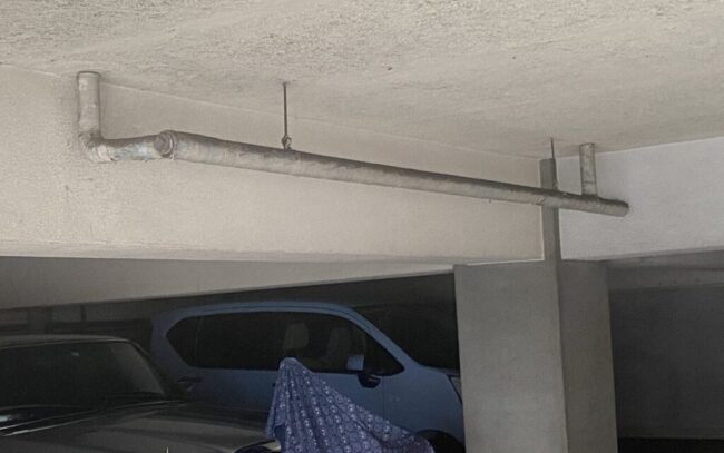 駐車場の真上の世帯の様々な配管が、駐車場の頭上に配管されておりましたので、非常に交換工事はやり易かったです。